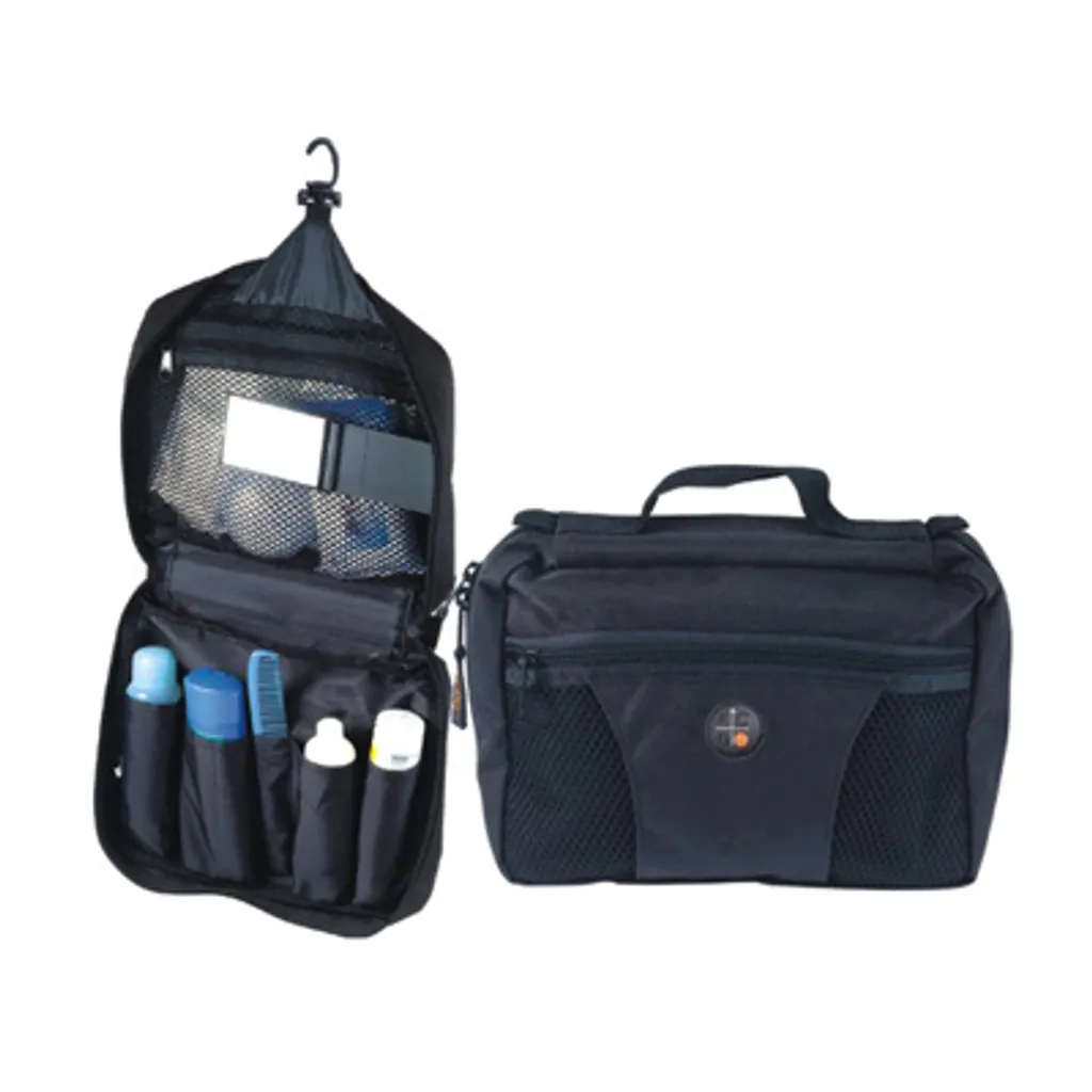 Water-resistant toiletries wash bag makes your travel becomes so convenient. All your toiletries can be fit into the bag, and you may open it up and hang it anywhere.